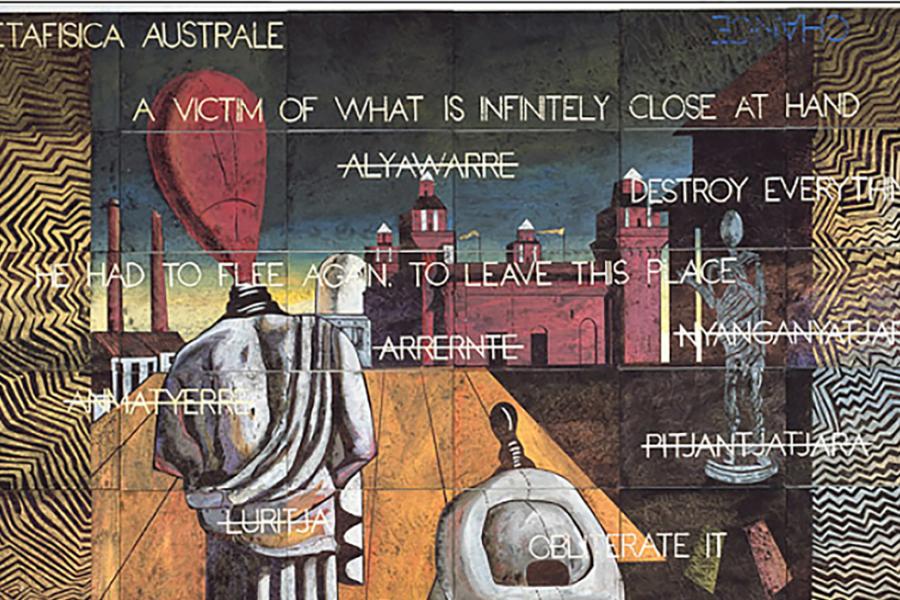 Imants Tillers is an artist, writer and curator. He has exhibited extensively since the late 1960s, and has represented Australia at significant international exhibitions including the Sao Paulo Biennial (1975), Documenta 7 (1982), and the Venice Biennale (1986). He is known for large-scale canvasboard paintings that intuitively combine existing artworks, literature and 'ready-made' poetry. Tillers is currently working towards a major retrospective at the Latvian National Museum of Art in 2018.