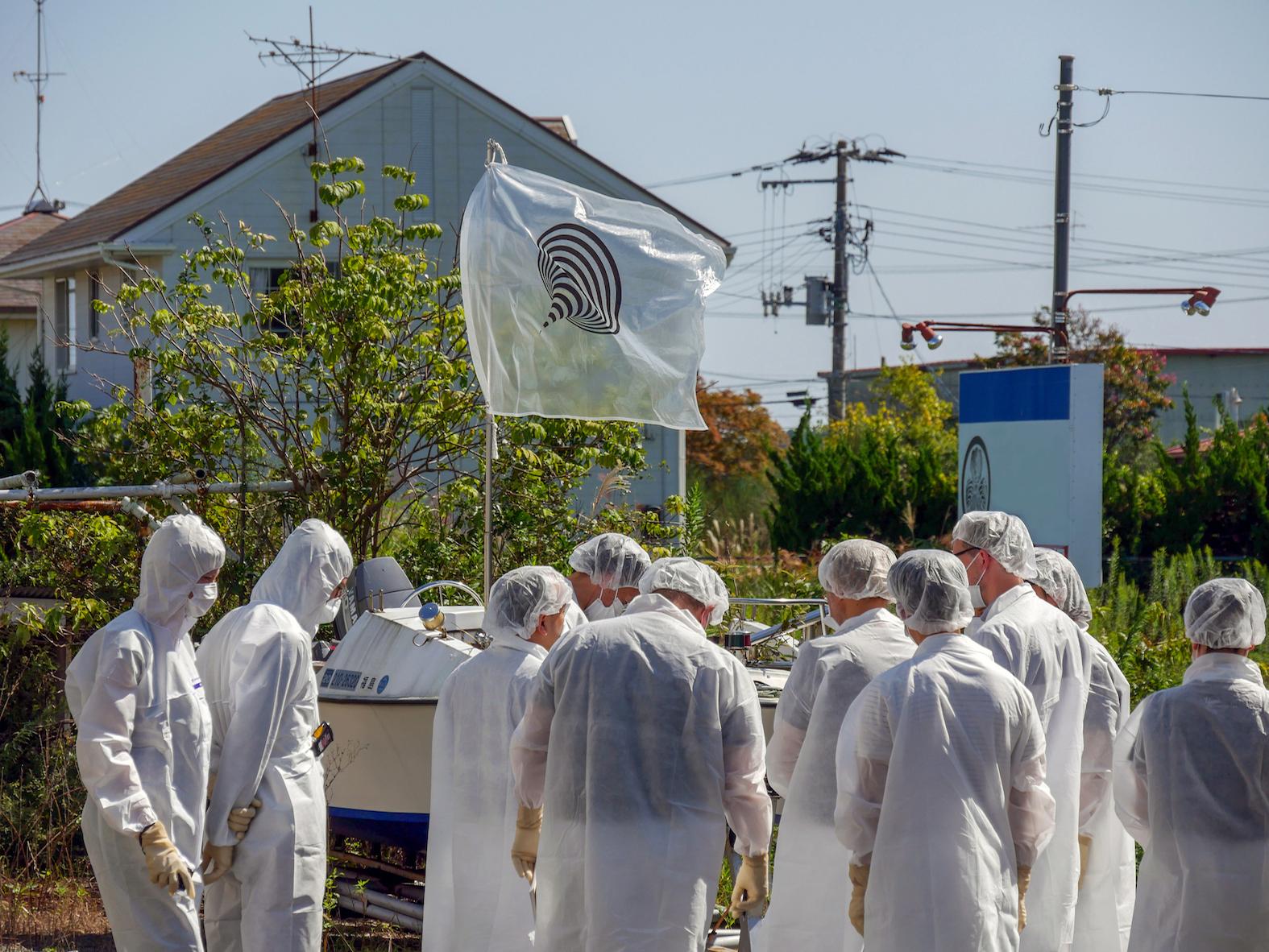 Don't Follow the Wind, Maintenance trip with flag designed by Naohiro Ukawa, Fukushima exclusion zone, Japan, 2015, Courtesy of Don’t Follow the Wind