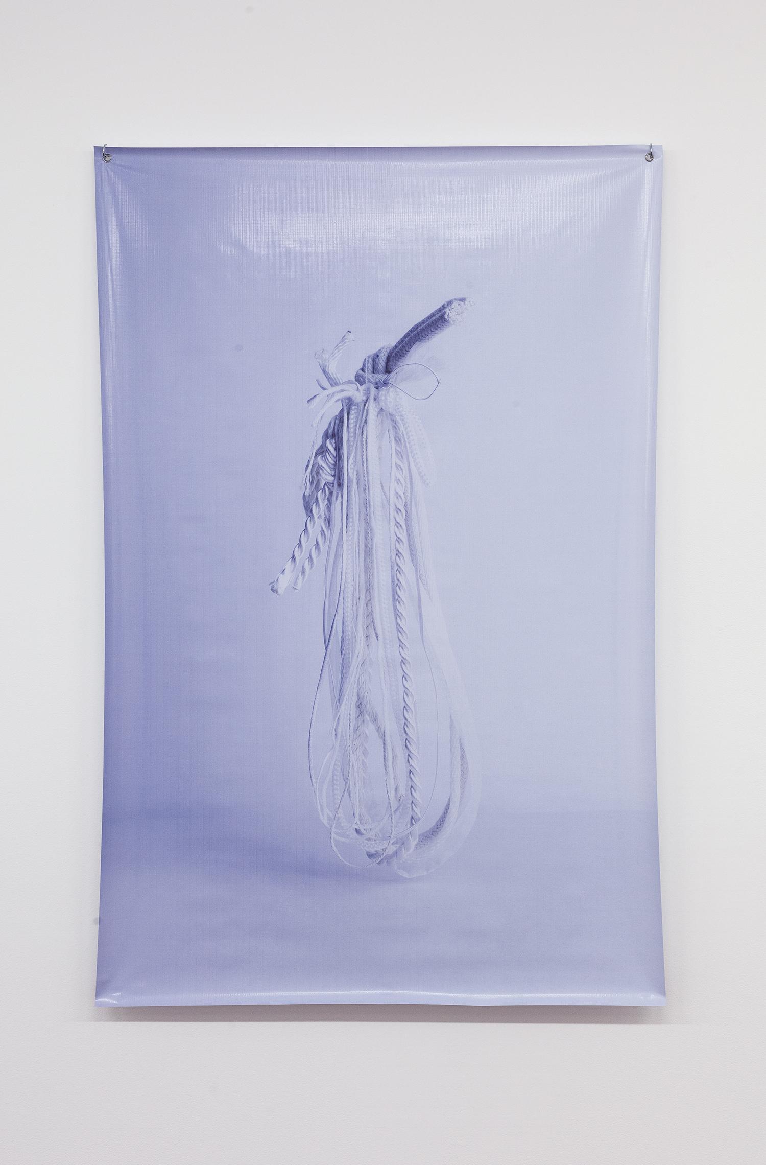 Lesley-Anne Cao, Dust (zinc alloy, plastic beads, sterling silver, PLA filament, thread, string, cord, rope), 2019, polytarp print, 153cm x 102cm, c3 contemporary art space, Melbourne.