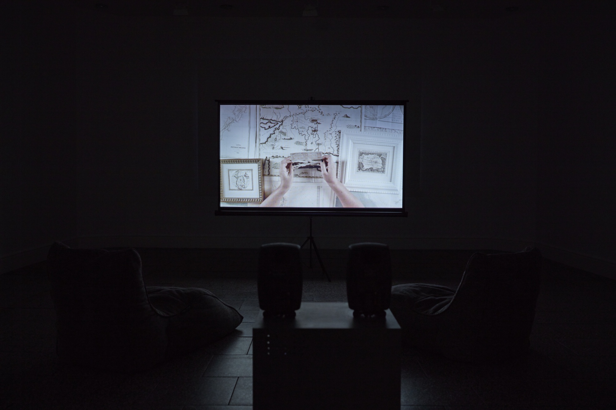 Ruth Watson, 'Unmapping the World', 2017, single-channel, looped HD video with screen and loungers, duration 7:23mins.