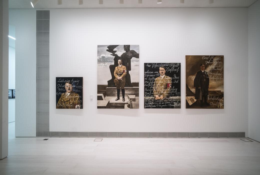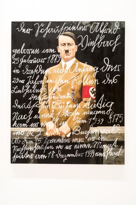 And so we enter the EMST’s Hitler and homosexuals gallery simply titled The Greek Way (2017): Glorified neatly painted portraits of Hitler are inscribed with the names of executed homosexuals by Piotr Uklański juxtaposed by McDermott & McGough reproductions from Leni Riefenstahl’s uber-classicizing glorification of the Athenian (reclaimed as Aryan) ideal in Olympia. The proudest portrait is presented on an entry wall, highly hung, waist at eye-level as a masterwork of Western art in its museological context and placement. The new Athenian gallery felt truly chilling and I wondered whether I was the only one mortified and sickened (as much so by the Eva Braun fantasy elsewhere). A German show for a German audience presented with unapologetic nonchalance (there were hundreds of Germans present for the preview days with little else heard other than German spoken, certainly few of the Indigenous cultures).