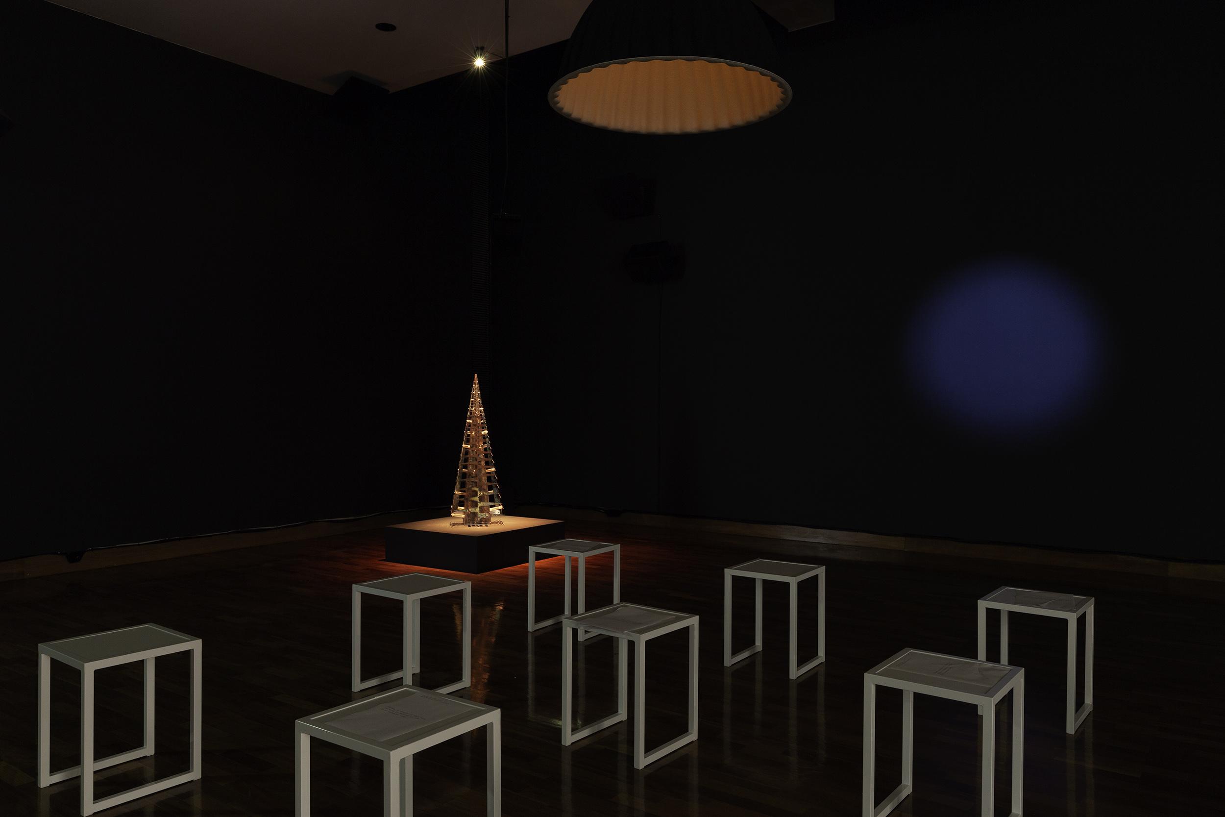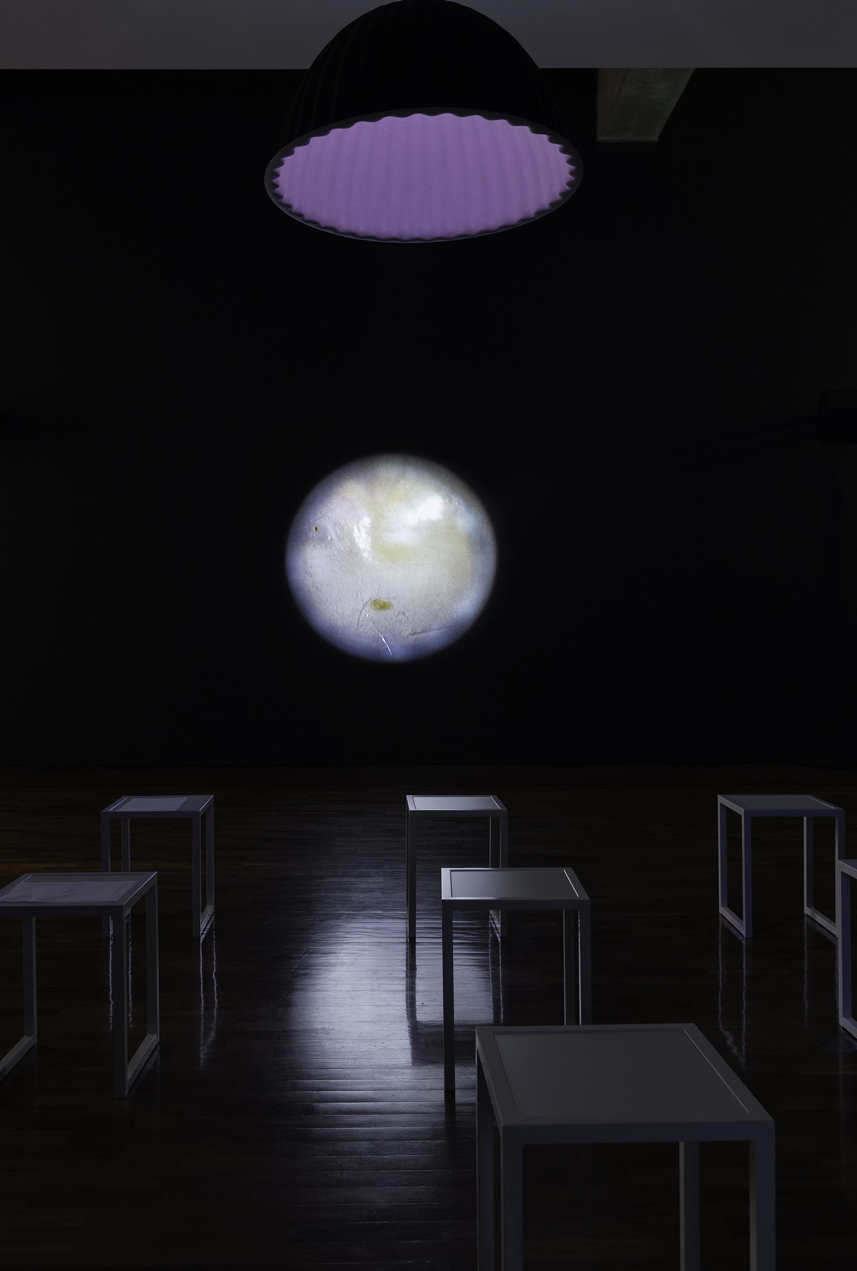 On the third floor of the gallery, I sense today’s urgency for different activist aesthetics. Several works focus particularly on corporate interests’ violence and violations—on the way that, besides the violent conditions of production of technologies, they embed the violating politics of surveillance into their technologies. In Always Learning (2018), Sean Dockray explores the learning and entrainment of ‘smart home devices’, which I sense parallels and instigates the learning and entrainment of us, their consumers. The very innocence of their appearance in his work belies the culture of surveillance and overhearing that produced them and that they re-produce. Their cacophony speaks of not just the entrainment they produce but the spin that surrounds them—spinning round the room to their voices, I feel that spin enter my body.