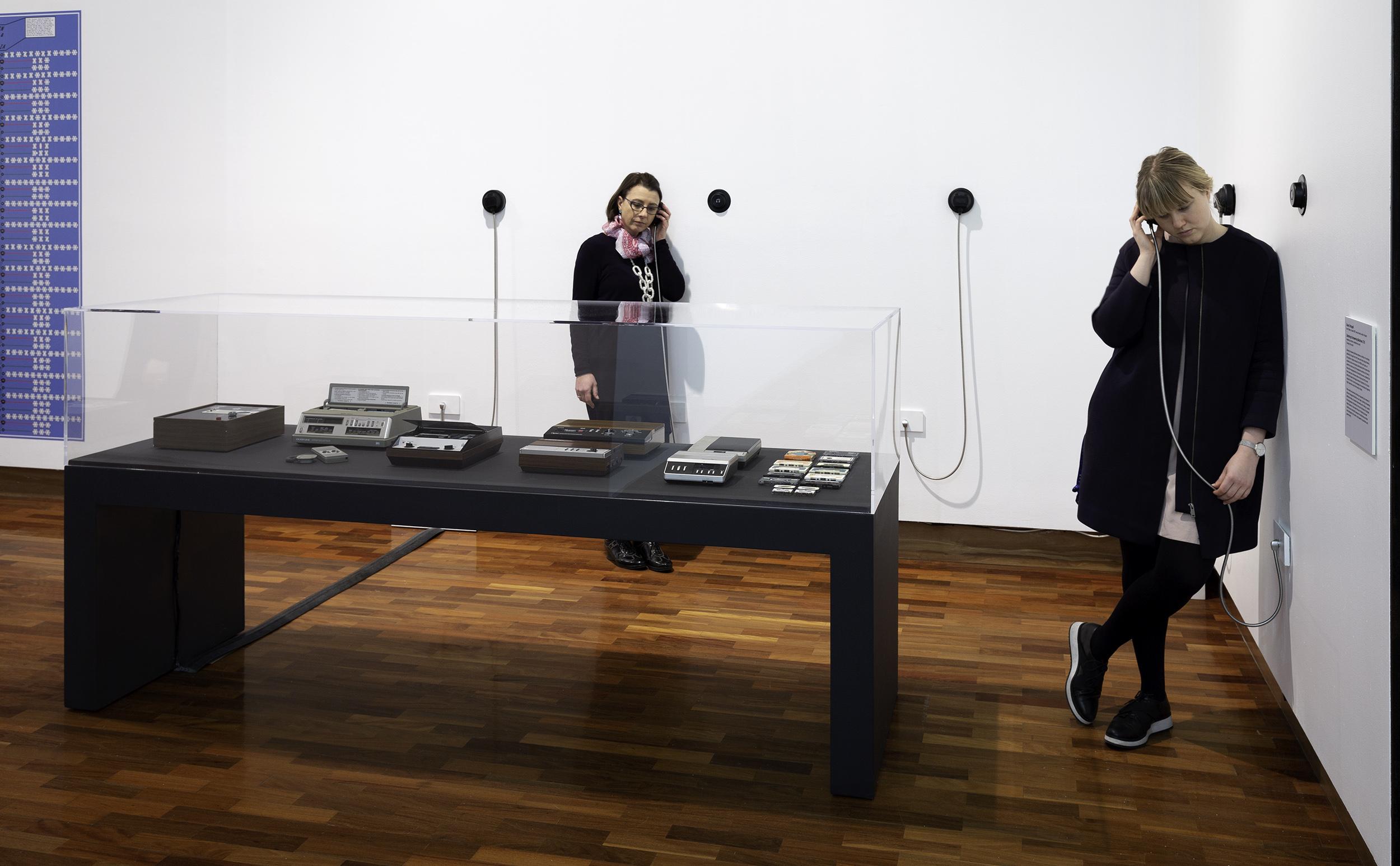 Thinking about the pervasiveness of how we’re now listened to and surveilled, I return for one last encounter with the main forensic architecture room. Throwing us back in time, Susan Schuppli’s Listening to Answering Machines (2018) displays and listens to these machines. Not just charming historical artefacts, they erupt periodically and unexpectedly into the space, disrupting not just this room but sounding throughout the exhibition—they are answer machines, after all—ever-present in the exhibition with their brief but insistent interruptive call. In their time, answer machines’ beeps, if you can remember them, were both welcome and intrusive, both public and private. To hear Schuppli’s collection of messages to and from strangers, I have to hold a single headphone to my ear. Not just beautifully and invitingly placed, the headphone leaves the other ear tellingly open to the rest of the exhibition. I listen and wonder, which is the eavesdropping ear?—sensing that I have myself become the perfect embodiment of listening in, overhearing and eavesdropping. Which is, after all, just what the exhibition is about.