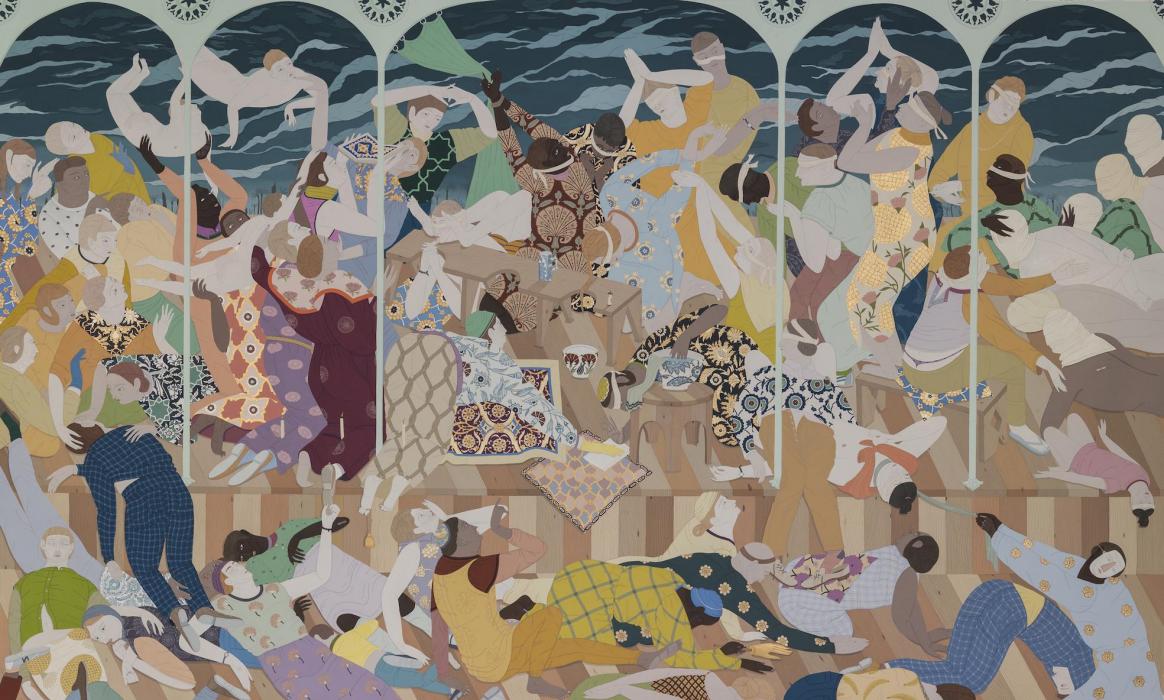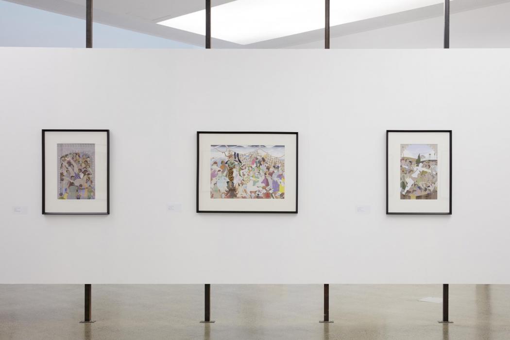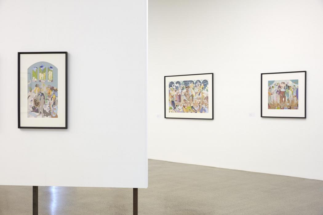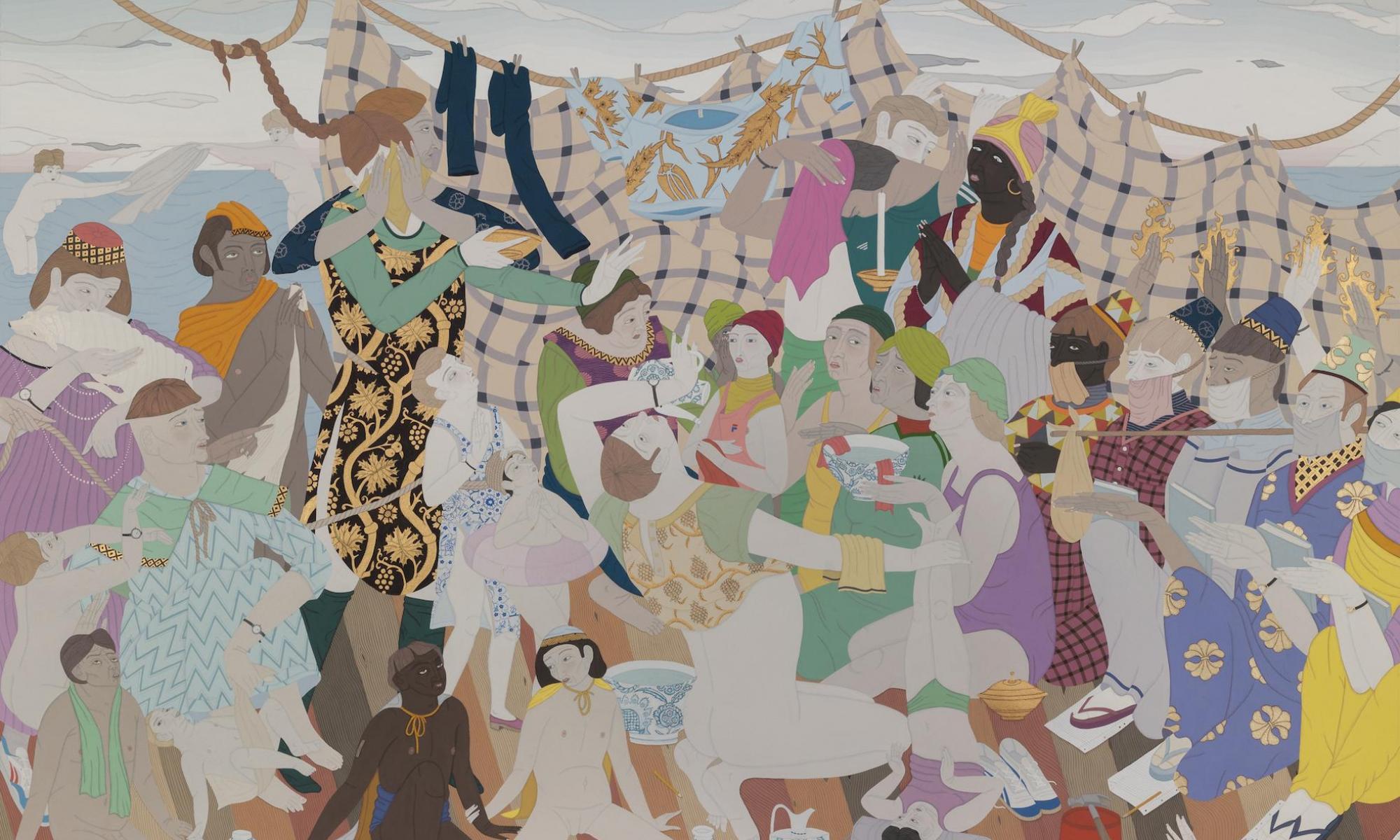 In this way, the suite of paintings evades the impulse to class its inhabitants and scenes as medieval/contemporary, archaic/modern. The diversity of sources is woven into a signature style. The breadth of time and space between each historical source seems to suggest the limitations and the specificity of our present-day categories of group identity, centred as they are on nation states and ethnic groups.