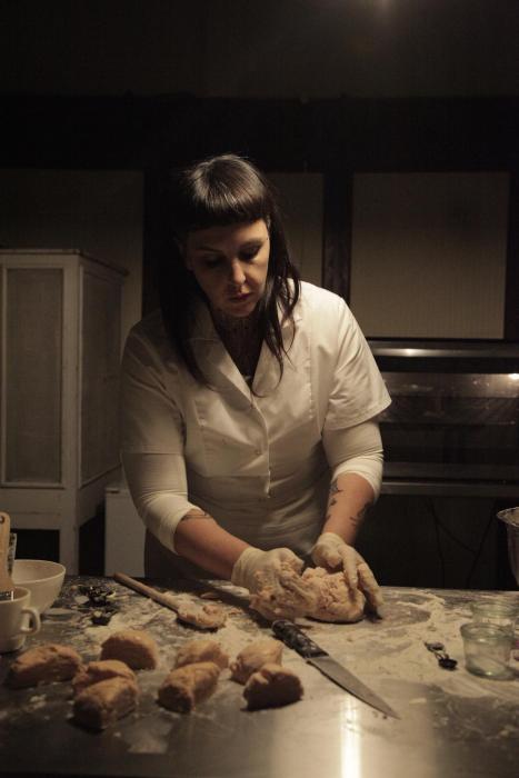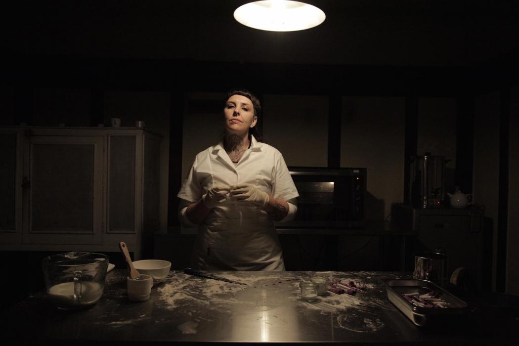 It was over with the same formalities in which it had begun. A metal bell rang from outside the room. Williams and Sheppard grimly gestured towards a second door. This led us through the kitchen, and proved the blood was very real as we watched Norman themself pouring the rusty fluid from medical vials into the dough, ready for the next group of stand-in ‘masters’. Unable to bear the sight of raw blood for too long I passed through to the stables. On my swift exit I clocked a steel chair and bench laden with syringes and empty vials, grisly evidence of the haematological exercise that had taken place before our arrival.