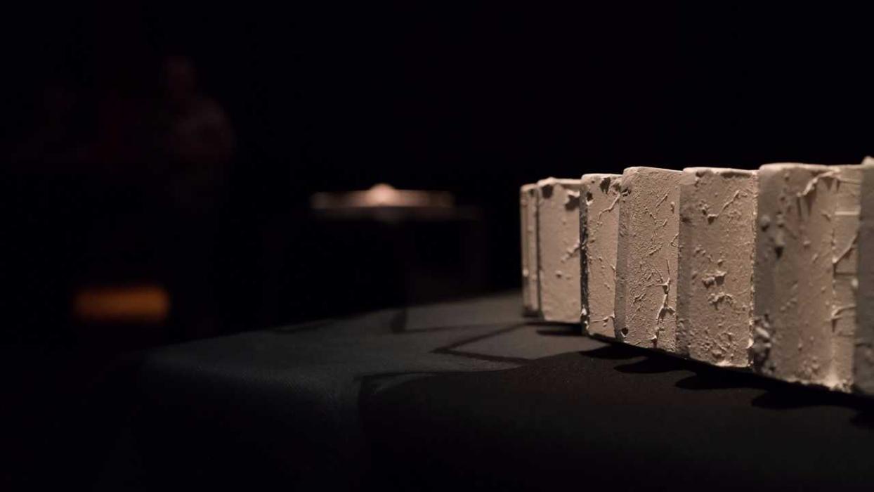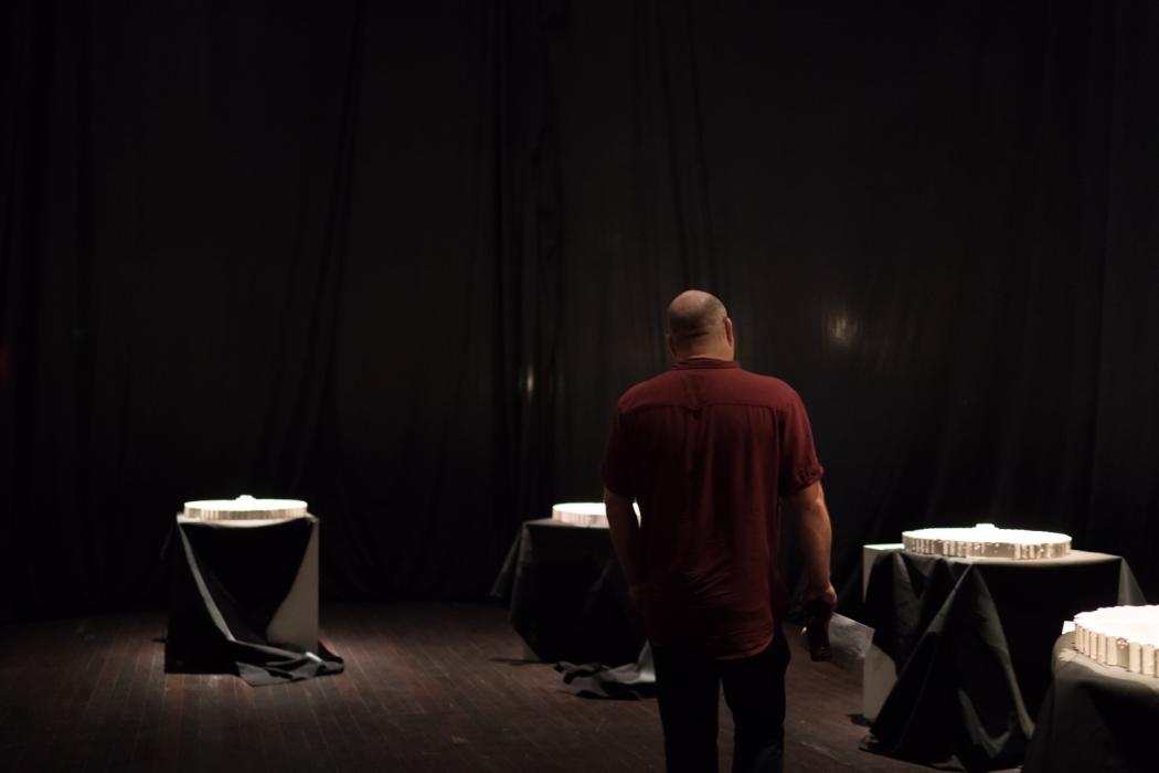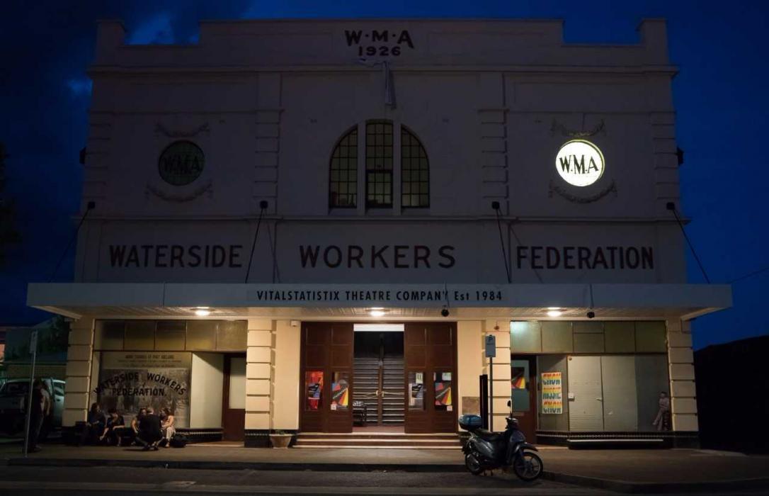 Offering a deeply nuanced and conceptually complex addition to the festival, Brad Harkin (of Anglo Australian and Narungga Aboriginal heritage) reflects on the history of the Port area in LOSS. GAIN. REVERB. DELAY. at Vitalstatistix. The large-scale installation and sound work transforms the gallery, formerly the Waterside Workers hall, into a veiled and contemplative space. Borrowing terms from music production, Harkin balances ‘loss’, the cutting of a signal, with ‘gain’, the raising of volume, metaphorically the loss and gain of cultural knowledge. Additionally ‘reverb’ and ‘delay’ store and replay a signal in order to fragment, distort, resonate and reverberate ideas into the future. Harkin explores the transmission of cultural knowledge through drawing on his father’s unionism and consequent sense of social justice, solidarity and work ethic.