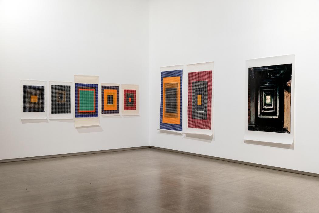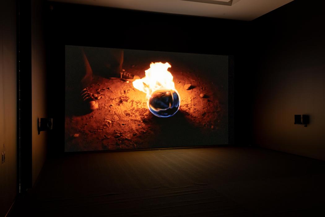 Francis Alÿs’s video installation, Paradox of Praxis 5: Sometimes we dream as we live & sometimes we live as we dream, Ciudad Juárez, México (2013) is tucked in the back corner of the gallery. The artist is known for his walking expeditions, and here, is featured kicking a flaming soccer ball through the border town of Ciudad Juárez, Mexico. The symbol of the ball on fire talks not only to the violence that has beleaguered the city, but introduces a sense of frivolity.