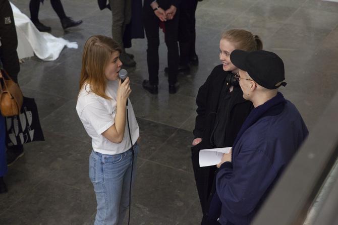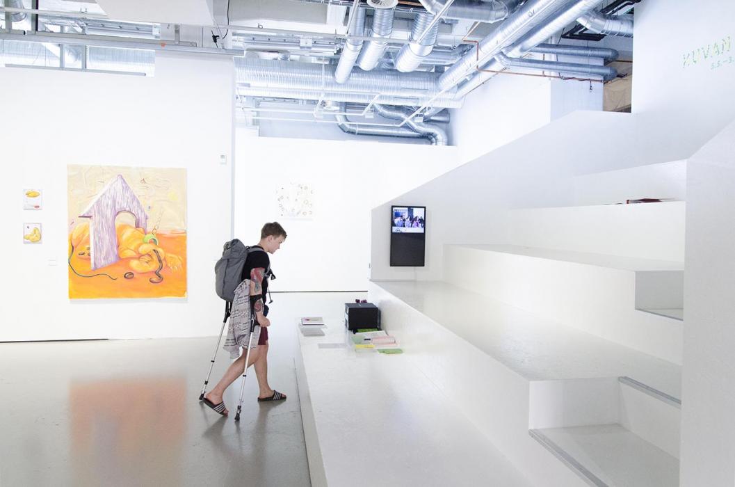 As I move through these situations, states, and institutions, I think about another project from this year’s Kuvan Kevät by Hami Bahadori. As a part of Safety and Possible Hazards (2018), Occupational Health and Safety Manager, Jyri Pulkkinen, led a public walk-through of the graduate exhibition. Participatory work always highlights labour conditions, and I was slightly surprised that Jyri chose to wear formal attire rather than the expected hi-vis. Aesthetics aside, the tour posed new frameworks for viewing, assessing and evaluating the works in the exhibition.