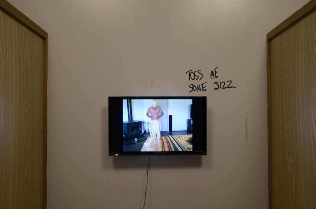 In Matthew Greaves’s Untitled (Secrets of the Female Mind) (2013) a male artist makes a work about a woman talking about how stupid women are. The video was part of Red Pill, the second exhibition at Perth’s Success gallery in early 2016.(1) Red Pill was ostensibly about radical masculinities, a freak show of secret guy stuff. There was a glowing bar fridge full of monster energy drinks and a cherub pissing into a pool that stank of male deodorant. The conceptual core of the show lay in a side-gallery where the pseudonymous Alan Smithee set up a series of televisions installed into changing cubicles. Playing on them were youtube videos of people in gimp suits, urinals and baggy pants. Typical of the video performers was wetsoldier, a dentist from North America who wears outdoor clothes in baths and pools, sensually rubbing himself in his heavy gear.