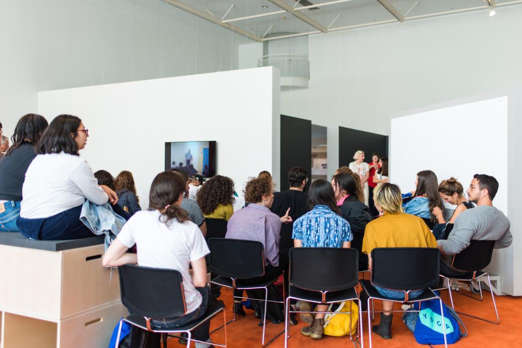 Although YBCA describes the Escuela as an ‘immersive public art project’, it almost feels wrong to draw a line around it, to pigeonhole it. At times an artwork, relational work, university course, or social initiative—the Escuela has many hats and it’s this condition of existing between categories that gives it its strength. Gallery visitors might stumble across it mid-session and see it as a live, participatory work, while students from affiliated universities (California College of the Arts, San Francisco Art Institute, the University of California, Berkeley, San Francisco State University) get actual university credits for attending.