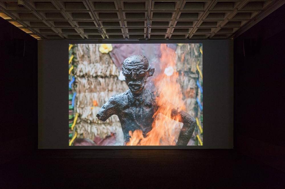In a much smaller gallery next to Ahtila’s sculpture was a nine-minute video piece commissioned by the Biennale: CAPTC—the artists from the plantation: A portrait by Baloji (2018). Scored by art director Baloji and overseen by Dutch artist Renzo Martens, the video explored the Cercle d’Art des Travailleurs de Plantation Congolaise and their dismantling of colonisation.[4]