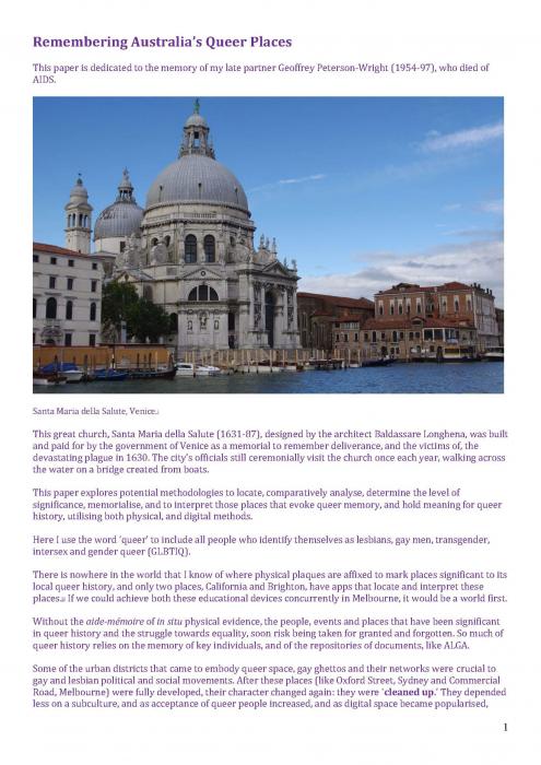 Remembering Australia’s Queer Places: An Updated Prologue
