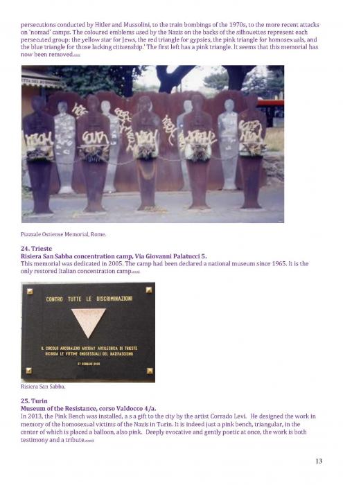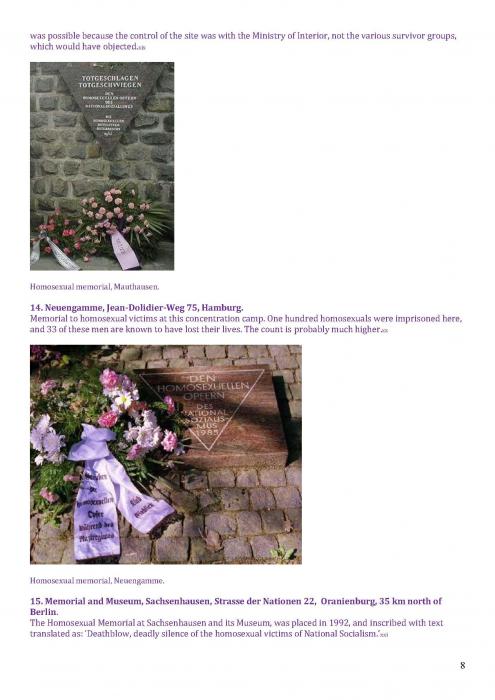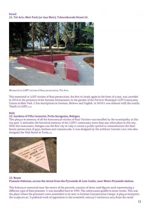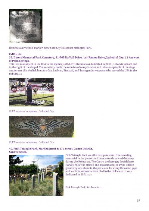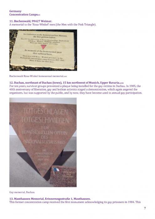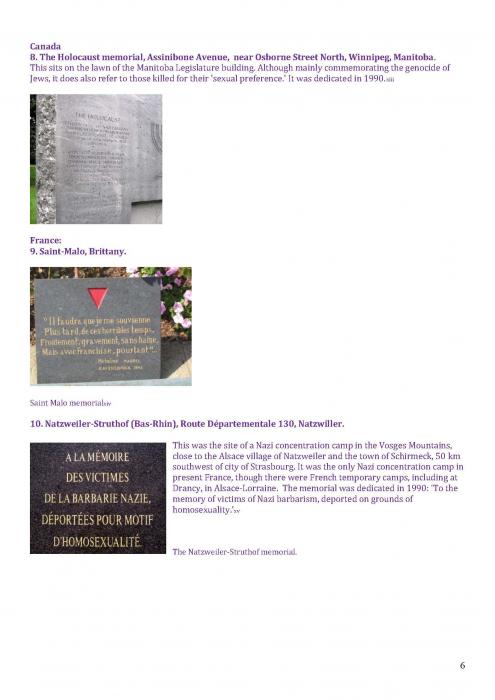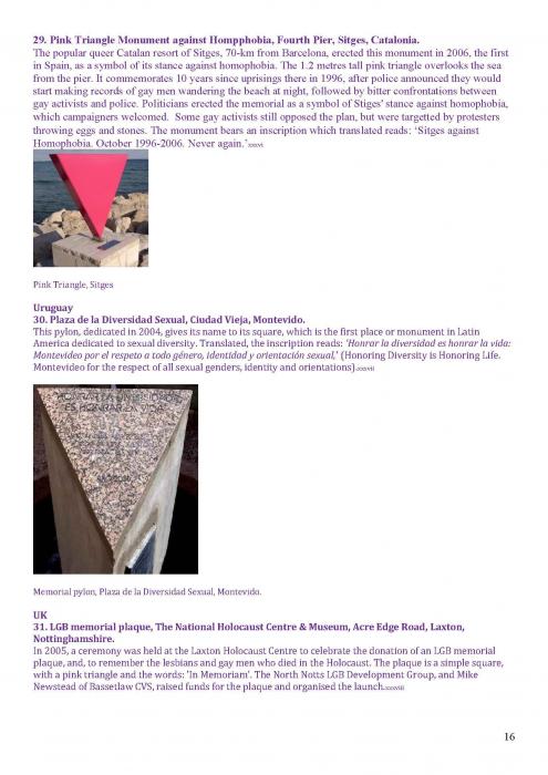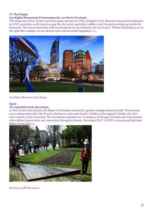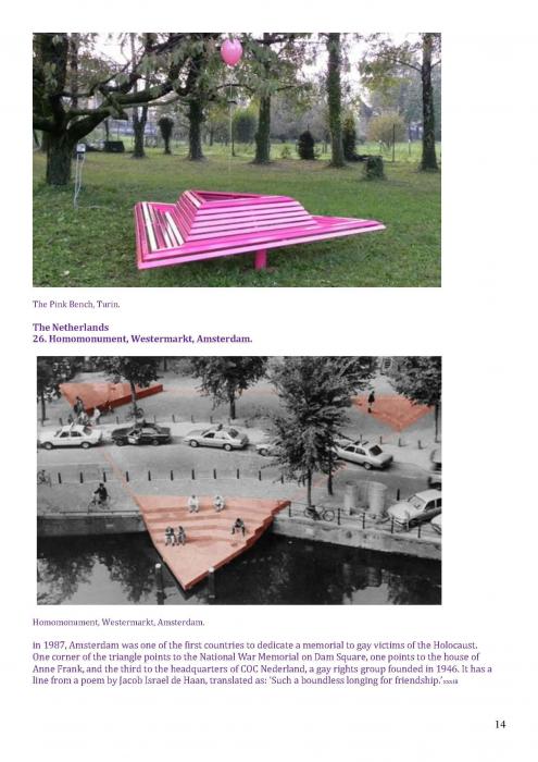[125]. This covers memorials in: Tel Aviv; Turing, Manchester; Memorial to Homosexuals Persecuted Under Nazism, Berlin; the Legacy Walk, Chicago; Gay & Lesbian Holocaust Memorial, Sydney; Sitges; Amsterdam; and Frankfurt. https://www.nationalgeographic.com/travel/lists/activities/lgbtq-monuments-around-the-world/